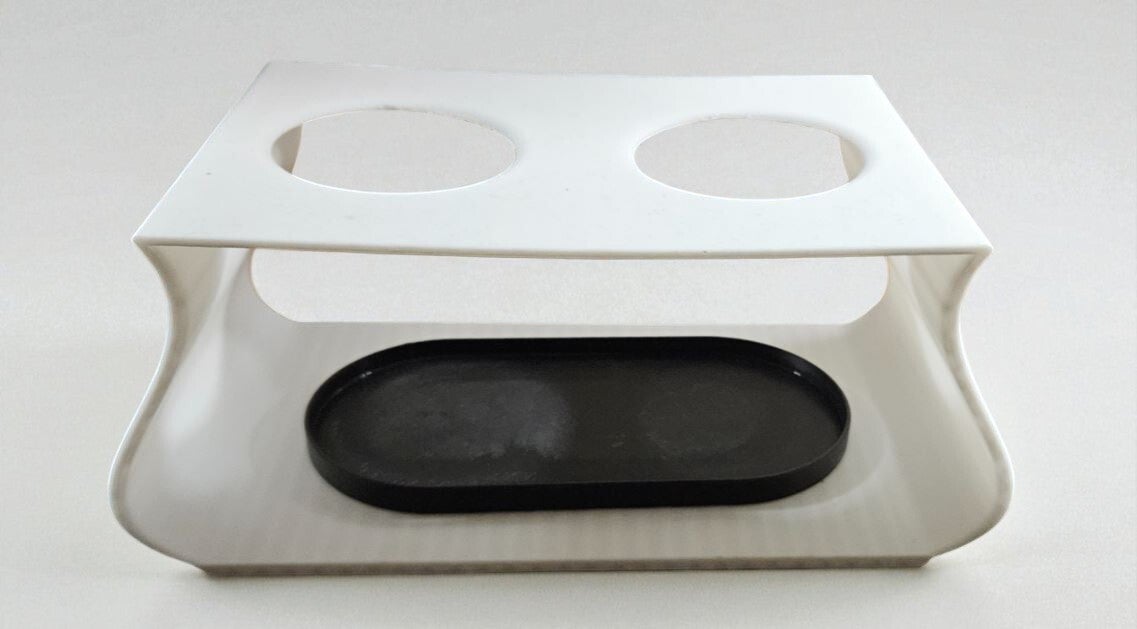 Weißer Halter mit schwarzer Tropfschale