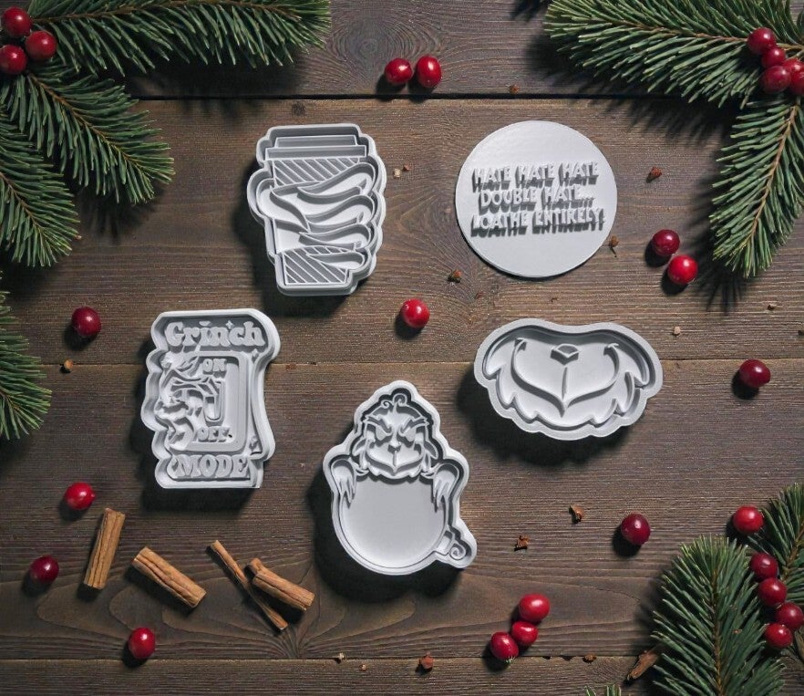 Mit diesem witzigen Grinch Keksstempel-Set bringst du Humor und Weihnachtsstimmung direkt in deine Backküche! Die detailreichen 3D-gedruckten Motive prägen klare, saubere Konturen – perfekt für Kekse, Fondant oder Bastelarbeiten.