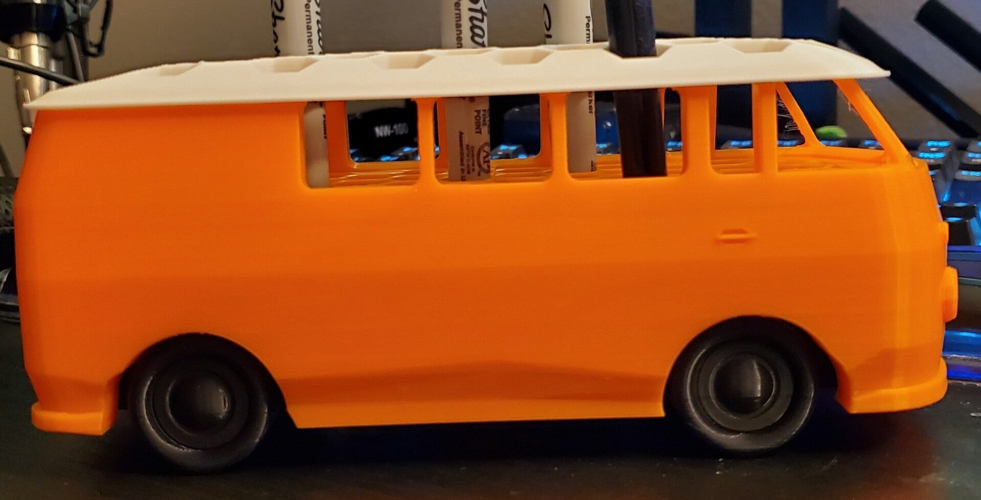 3D-gedruckter Stiftehalter im VW-Bus-Design
